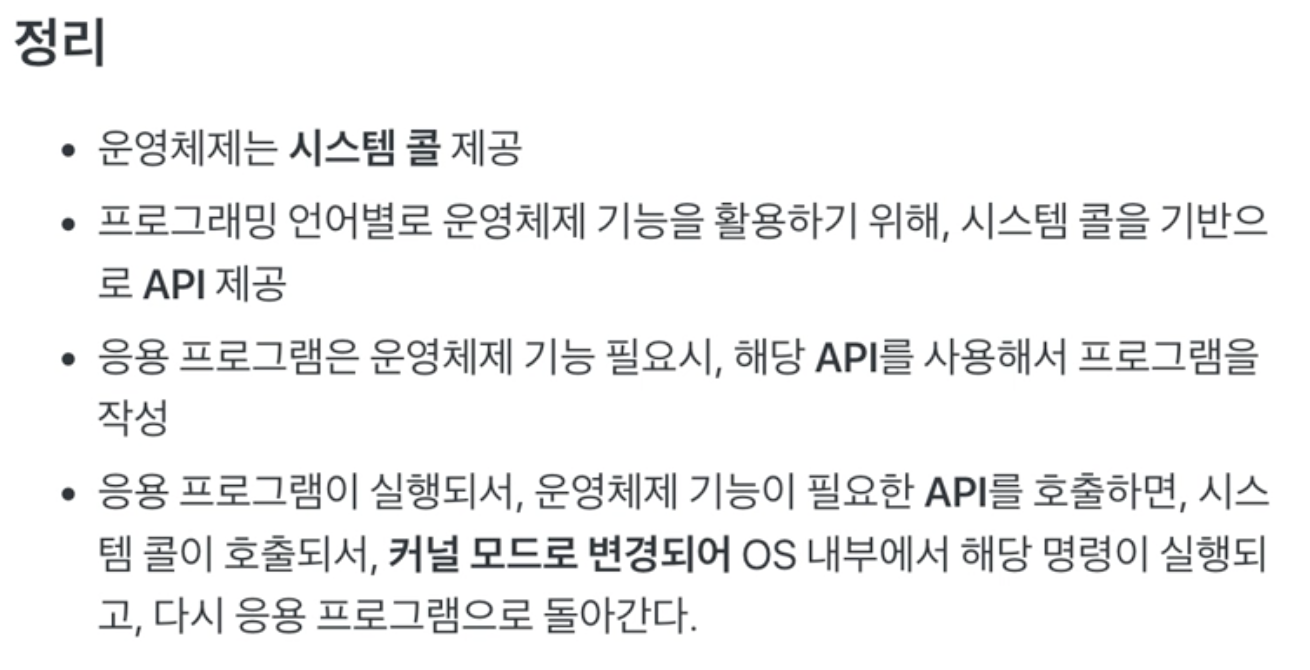 응용프로그램 등이 시스템 콜이 필요하면 api를 통해 요청하게 된다.