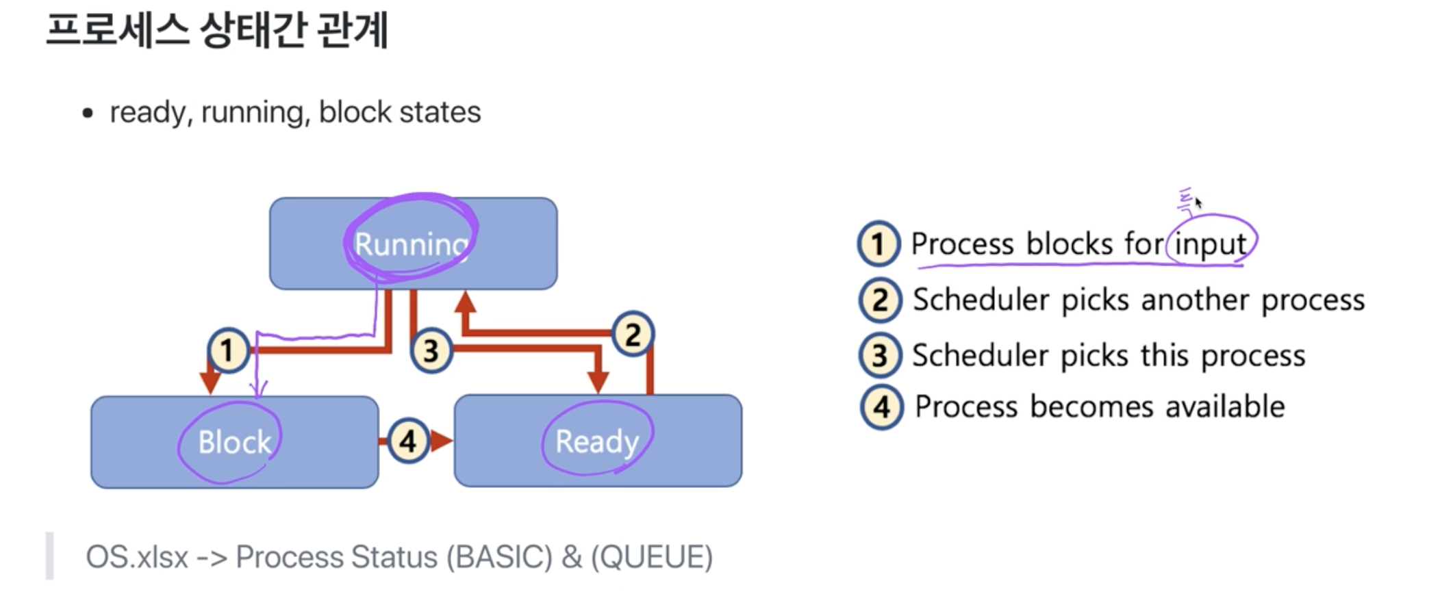 2- block을 제외하고 ready 상태의 프로세스를 찾아서 실행함