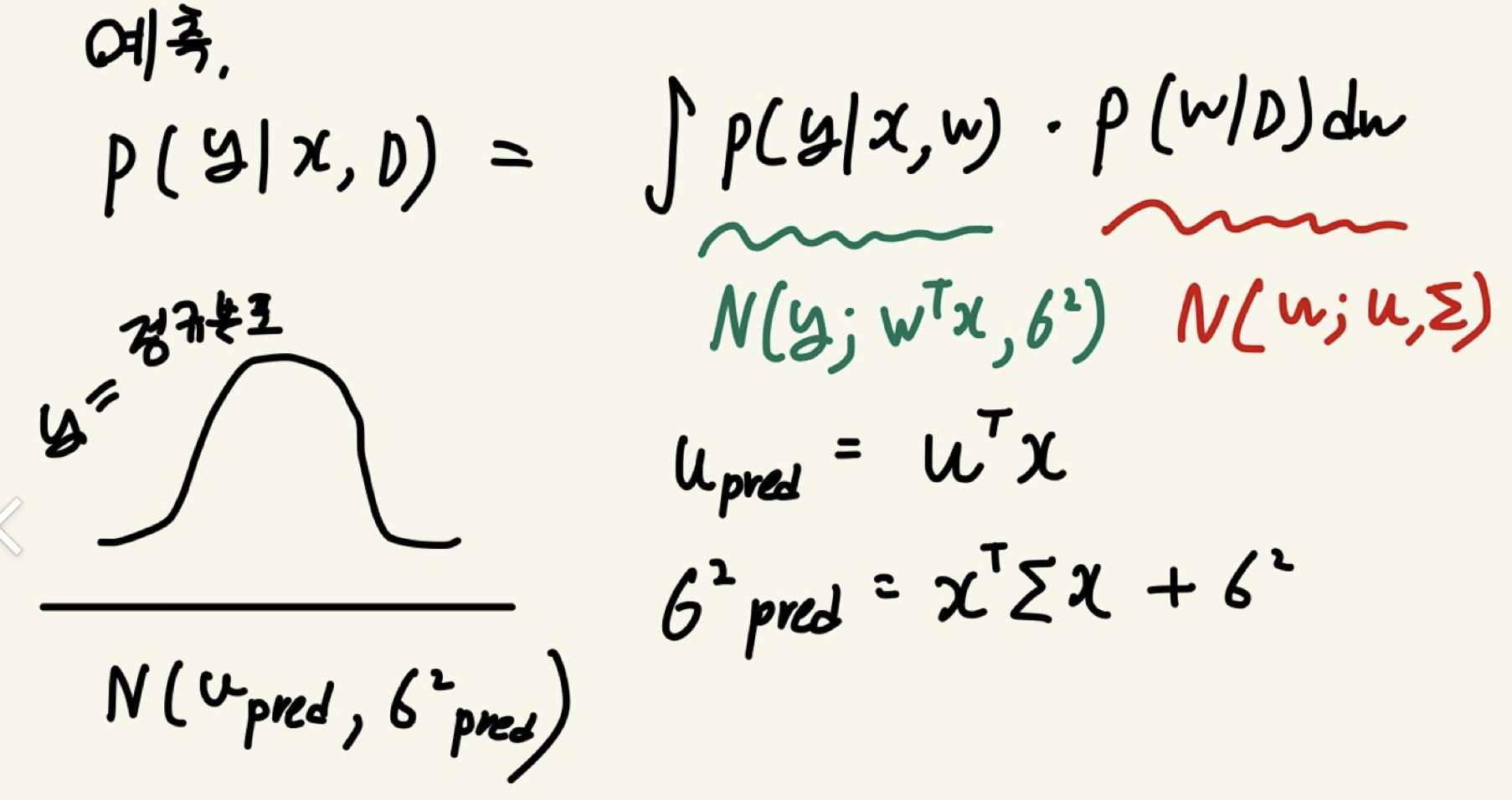 y는 u_pred, 시그마_pred 를 따르는 정규분포로 구할 수 있다.