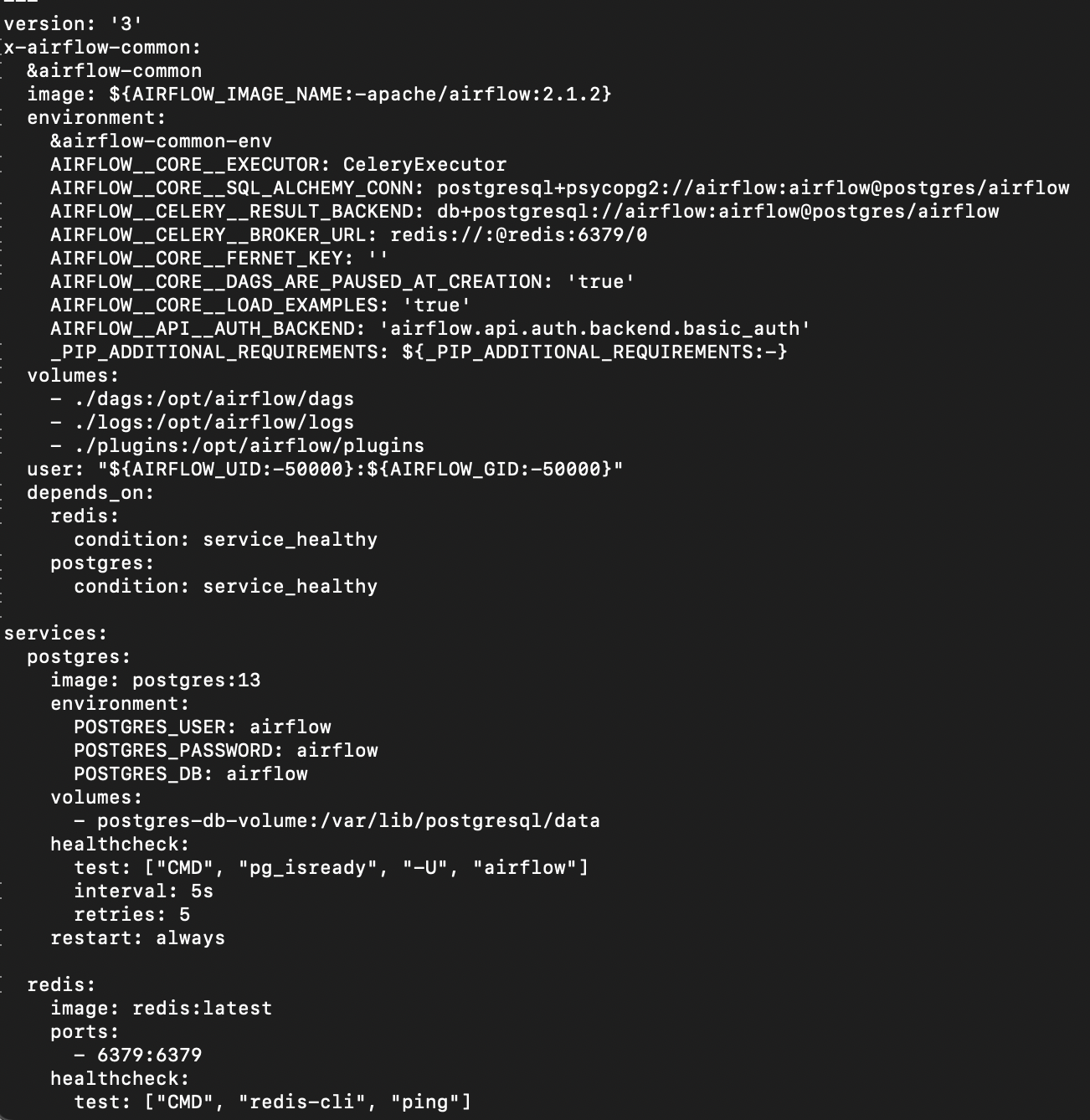 우리는 단일 인스턴스에서 Local Executor를 통해 Airflow를 설치할 것이므로 executor를 포함하여 docker-compose.yaml에서 몇군데 수정을 해주어야한다.