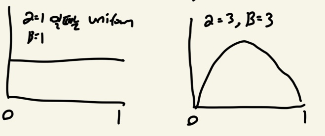 먼저 베타분포에 대해서 알아야 하는데 베타분포는 성공횟수 a-1 , 실패횟수 B-1 만큼 관측 되었을 때 성공확률에 대한 확률분포이다.