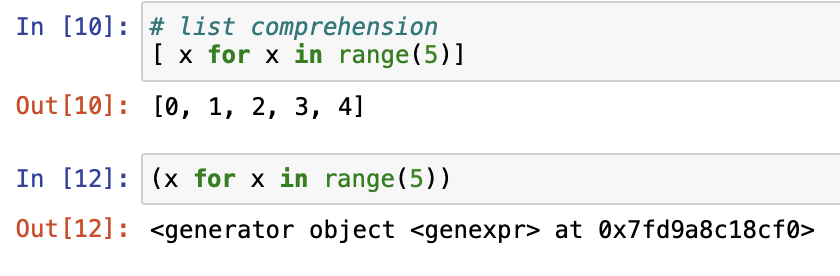 또한 list comprehension 에서 [] 대신 () 를 사용하게 되면 generator를 반환하게 된다.